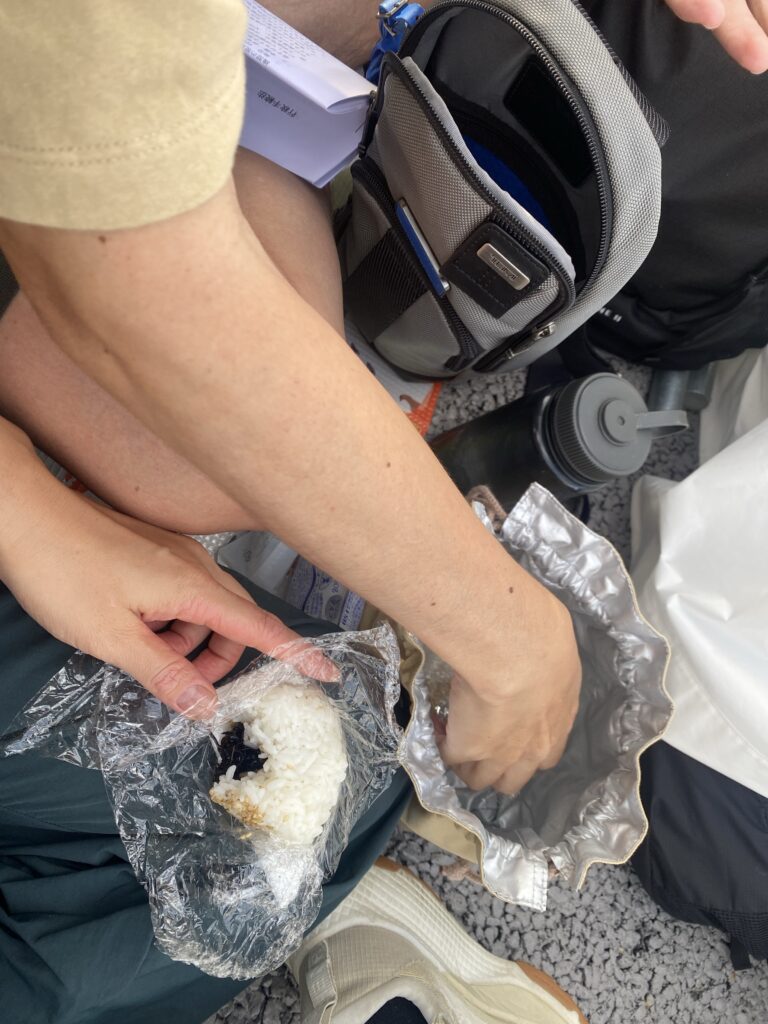 早朝つくったゆで卵とおにぎりを。昨日100キンでレジャーシート買っといて正解✨
